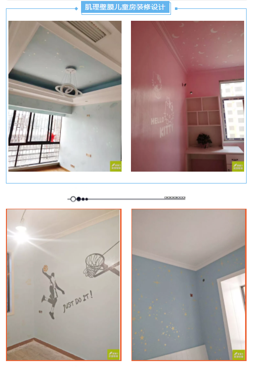 多美力肌理壁膜不仅可以做出墙纸的印花效果,还可以自行设计涂刷出星空墙面、天空墙面等等。除了环保,它还具有耐水防霉、附着力好、经磨耐擦、装饰性强、施工简便等特点,完工效果无接口,不会像传统墙纸因拼接产生接缝,遇潮遇湿后出现脱胶、起卷、发霉、整体脱落等现象。 |