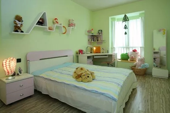 在颜色的协搭上可以敞亮、轻快、快乐为目标,多用一些对比色,这样对于区分不同功用的区域效果也很佳。一般来说,过渡色可用白色,另外孩子适宜的颜色应与他们的年龄相关,同时为了满足儿童的想象力,可选用蓝天、白云、绿草等景观,这些设计对于孩子幼小身心起到极好的促进作用。