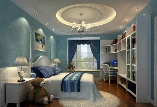 儿童房的色彩多通过墙壁来表现,在色彩和空间搭配上尽量以明亮、轻松、愉悦为选择的方向,不妨多点对比色的交叉运用。把孩子的空间设计得五彩缤纷,不仅适合儿童天真的心理,而且鲜艳的色彩在其中会洋溢起希望与生机。